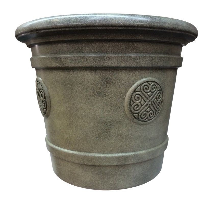 Высокий и вместительный цветочный горшок-кашпо TEK.A.TEK Medallion выполнен из прочного и долговечного пластика с покрытием, имитирующим натуральный камень, фисташкового цвета. Материал не выгорает и не теряет цвет, подходит для выращивания растений с мощной корневой частью. Для лучшего дренажа и роста растения на дно горшка насыпьте керамзит. Диаметр горшка - 60 см, высота - 49 см. Объем - 80 литров.