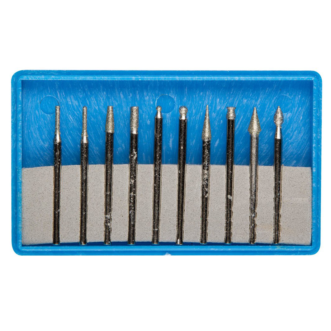 Набор мини-насадок ЗУБР 33383-H10 предназначен для гравировальной бормашины, которая в свою очередь используется для максимально точной шлифовки металлов, пластика, керамики, стекла и прочих материалов. Все насадки имеют алмазное напыление. Равномерное распределение алмазного порошка гарантирует качественную и чистую обработку поверхностей. Ассортимент мини-насадок различных форм позволяет обрабатывать самые сложные участки разной конфигурации. Комплект упакован в пластиковый бокс.