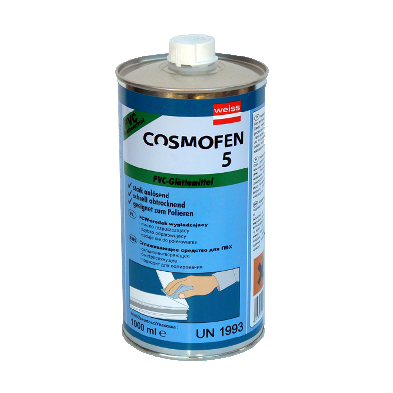 COSMOFEN 5 применяется в оконном производстве и на промышленных предприятиях как полирующее и разглаживающее средство для ПВХ. Очиститель сильно растворяет поверхности из ПВХ. Служит для удаления царапин, неглубоких трещин, следов трения с поверхностей из непрозрачного жесткого ПВХ, полистирола, органического стекла. Предназначен также для применения в мебельной, рекламной и других отраслях промышленности.
