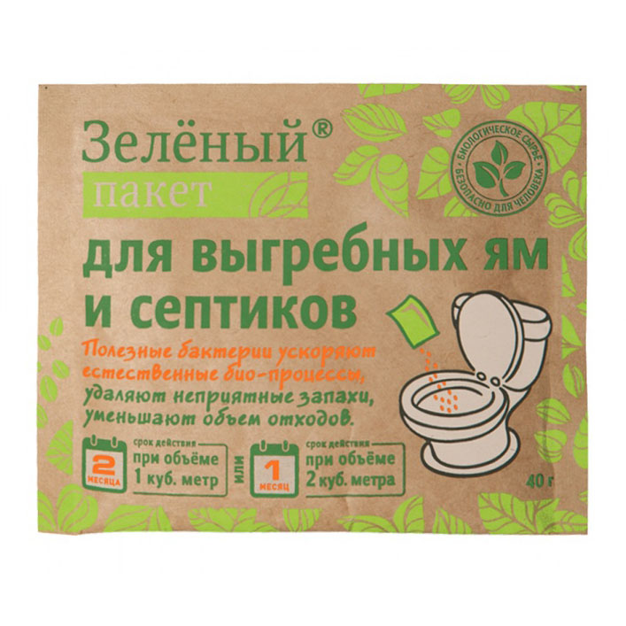 Зеленый пакет от Доктор Робик это БИО помощь для вашего септика и выгребной ямы. Полезные бактерии ускоряют естественные процессы, удаляют неприятные запахи, уменьшают объем отходов.