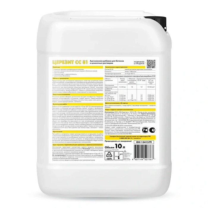 Адгезионная добавка СС 81 предназначена для изготовления адгезионных слоев перед нанесением цементных стяжек и штукатурок, а также при выполнении бетонных работ, с целью повышения адгезии наносимых материалов к плотным минеральным основаниям внутри и снаружи зданий.