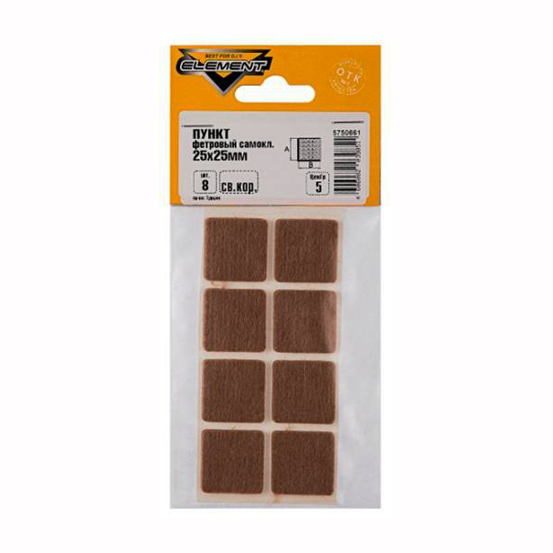 Пункт фетровый ELEMENT Самоклеящийся светло-коричневый 25x25мм
