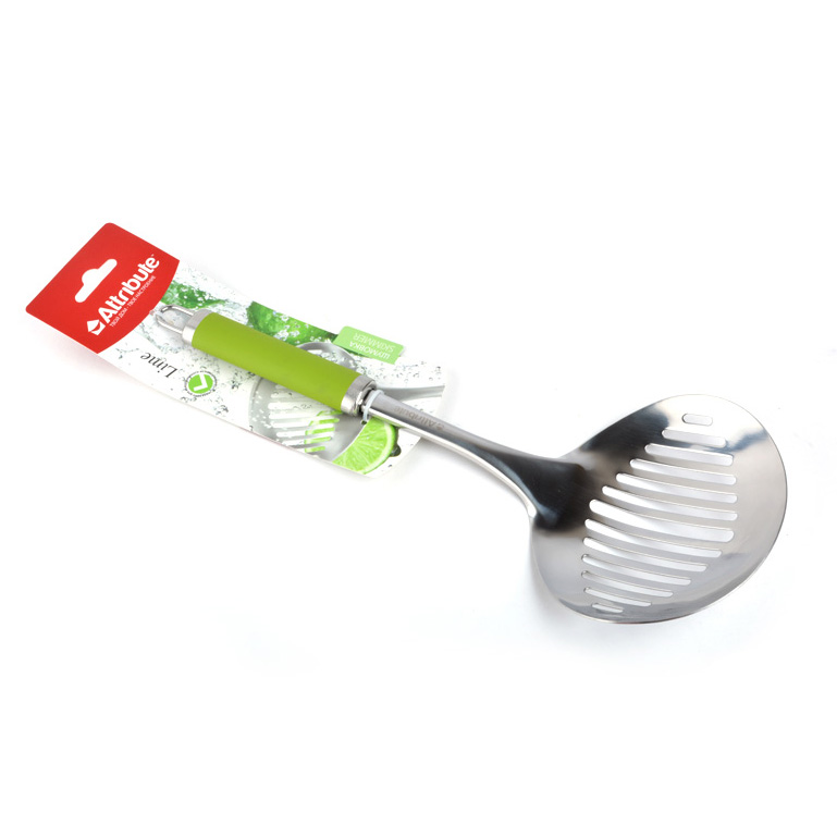 Шумовки Attribute Gadget "Lime" изготовлена из нержавеющей стали и пластика. Эргономичная ручка не нагревается, оснащена отверстием для практичного хранения на кухне. Имеется петля для навески в удобном для Вас месте. Можно мыть в посудомоечной машине.