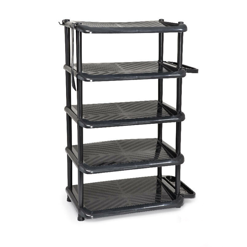 Этажерка для обуви "Комфорт" от Полимербыт - это современное и функциональное решение для организации пространства в вашем доме. Изготовленная из прочного пластика, она обеспечивает долговечность и безопасность использования. Этажерка оснащена пятью полками, на которых можно разместить до 10 пар обуви. Черный цвет корпуса и современный дизайн делают ее отличным дополнением к интерьеру любого дома.