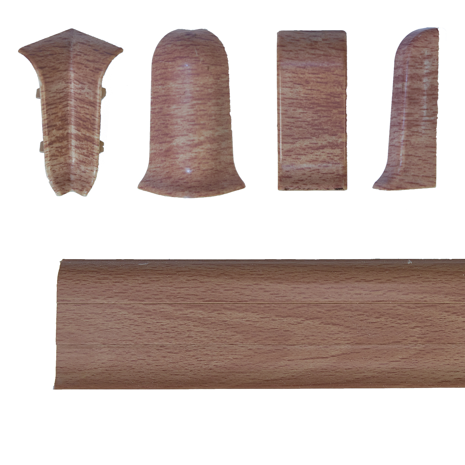 Фурнитура, используемая при установке плинтуса, упрощает установку, делает её завершённой, в точности повторяет профиль плинтуса в поперечном сечении, что даёт плотное прилегание элементов, не оставляя зазоров между плинтусом и элементом.