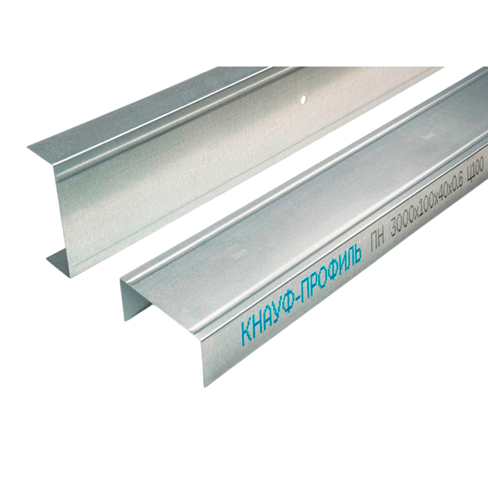 Направляющий профиль КНАУФ ПН-4 100х40 мм имеет П-образную форму и служит в качестве основания для стоечных профилей, а также для устройства перемычек между ними в каркасах перегородок и облицовок.