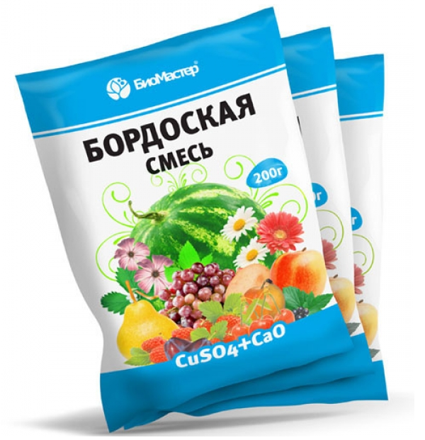 Бордоская смесь - универсальное средство для защиты плодовых, ягодных, овощных, бахчевых, декоративных культур, винограда и хвойников от комплекса грибных и бактериальных заболеваний. Применяется в виде 3%-ной бордоской жидкости для ранневесеннего "голубого" опрыскивания деревьев и кустарников, 1%-ный раствор для опрыскивания всех культур в период вегетации.