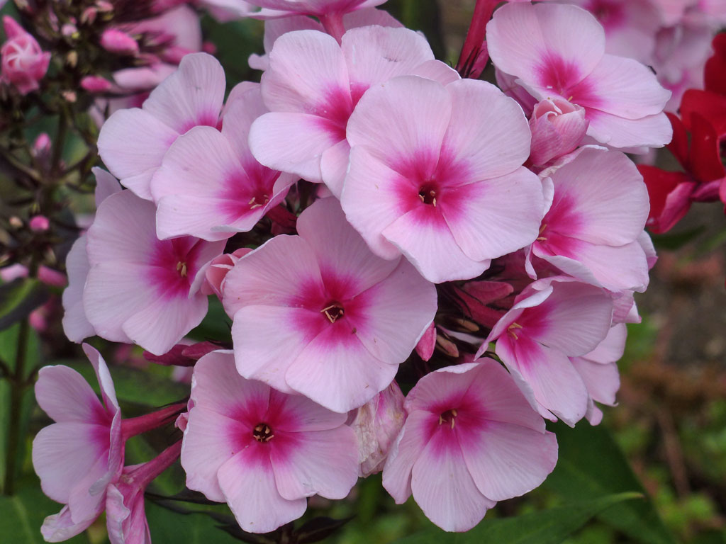 Флоксы - растения травянистые многолетние. Стебли прямостоячие, восходящие или ползучие, от 10-20см до 120-150см высотой. Листья цельнокрайные, сидячие, расположены супротивно, иногда в верхней части стебля — в очередном порядке, ланцетные, овально-ланцетные, яйцевидно-удлиненные. Цветки душистые, белые, розовые, красные, сиреневые, алые, голубые, карминовые с глазком в центре, 2,5-4см в диаметре, обычно собраны в щитковидные или метельчатые соцветия различного строения и величины, реже одиночные.