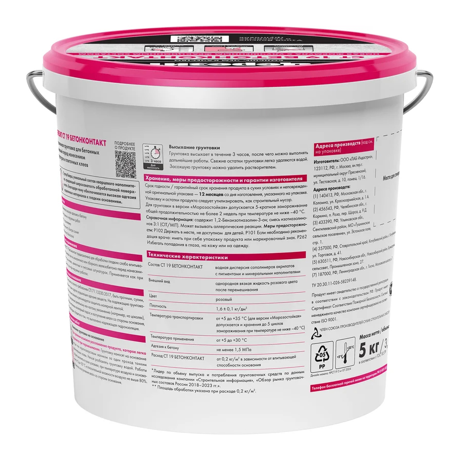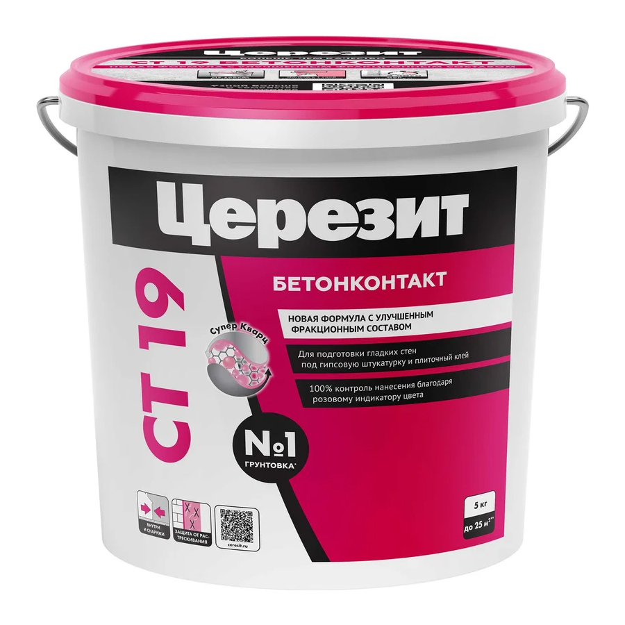Грунтовка CT 19 Бетонконтакт предназначена для обработки гладких слабо впитывающих оснований стен из монолитного или сборного железобетона перед нанесением плиточных клеев, цементных и гипсовых штукатурок.