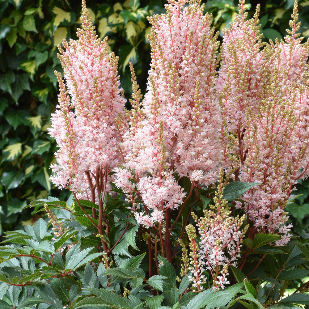 Астильбы – многолетние корневищные травянистые растения с отмирающей на зиму надземной частью. Стебли прямостоячие, высота в зависимости от вида - до 200см. Своими красками и формами эти растения оживляют светло-тенистые места в саду. Цветки розовые, светло-розовые, карминовые, красные, красно-фиолетовые, сиреневые, кремовые или белые в зависимости от сорта. Многочисленные цветочки собраны в крупные ажурные метелки. Характер роста кустовидный, от прямого до раскидистого.