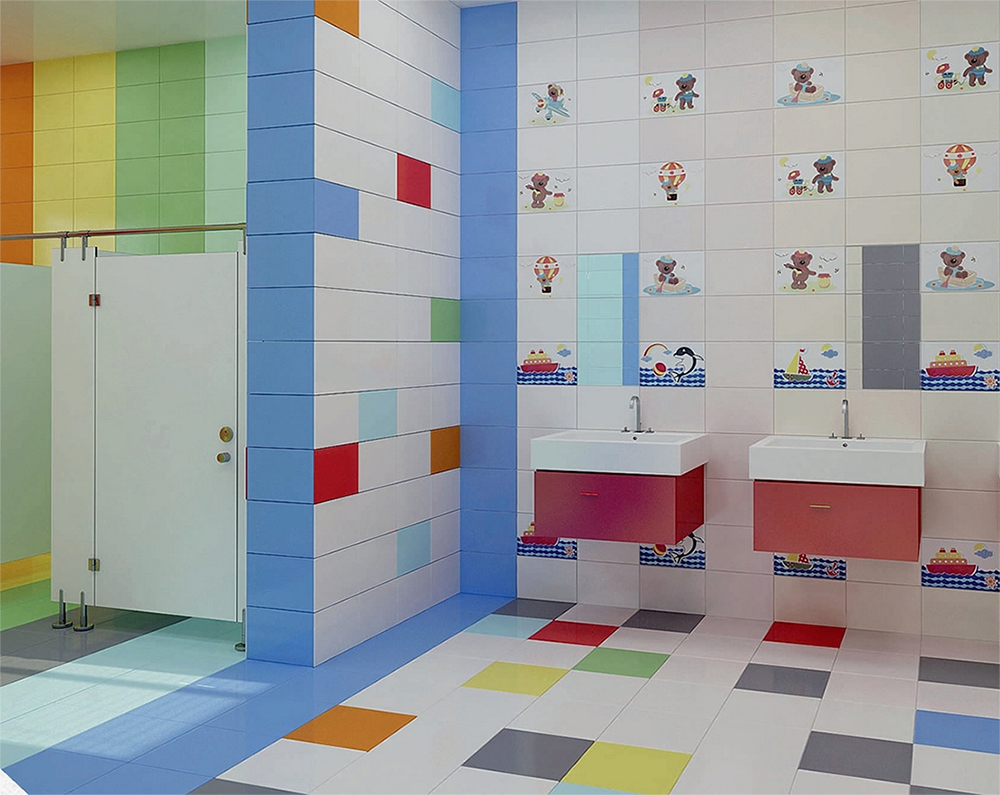 Керамическая плитка Радуга может использоваться для оформления санузлов в детских учреждениях, особенно в дополнении декоров в детской тематике. Поверхность керамической плитки из коллекции Радуга матовая, она прекрасно моется и абсолютно безопасна для детей. Коллекция не ограничивает вашу фантазию в оформлении интерьеров, комбинируйте различные цвета, создавая интересные композиции. Плитка Радуга - простота и оригинальность в одной коллекции!