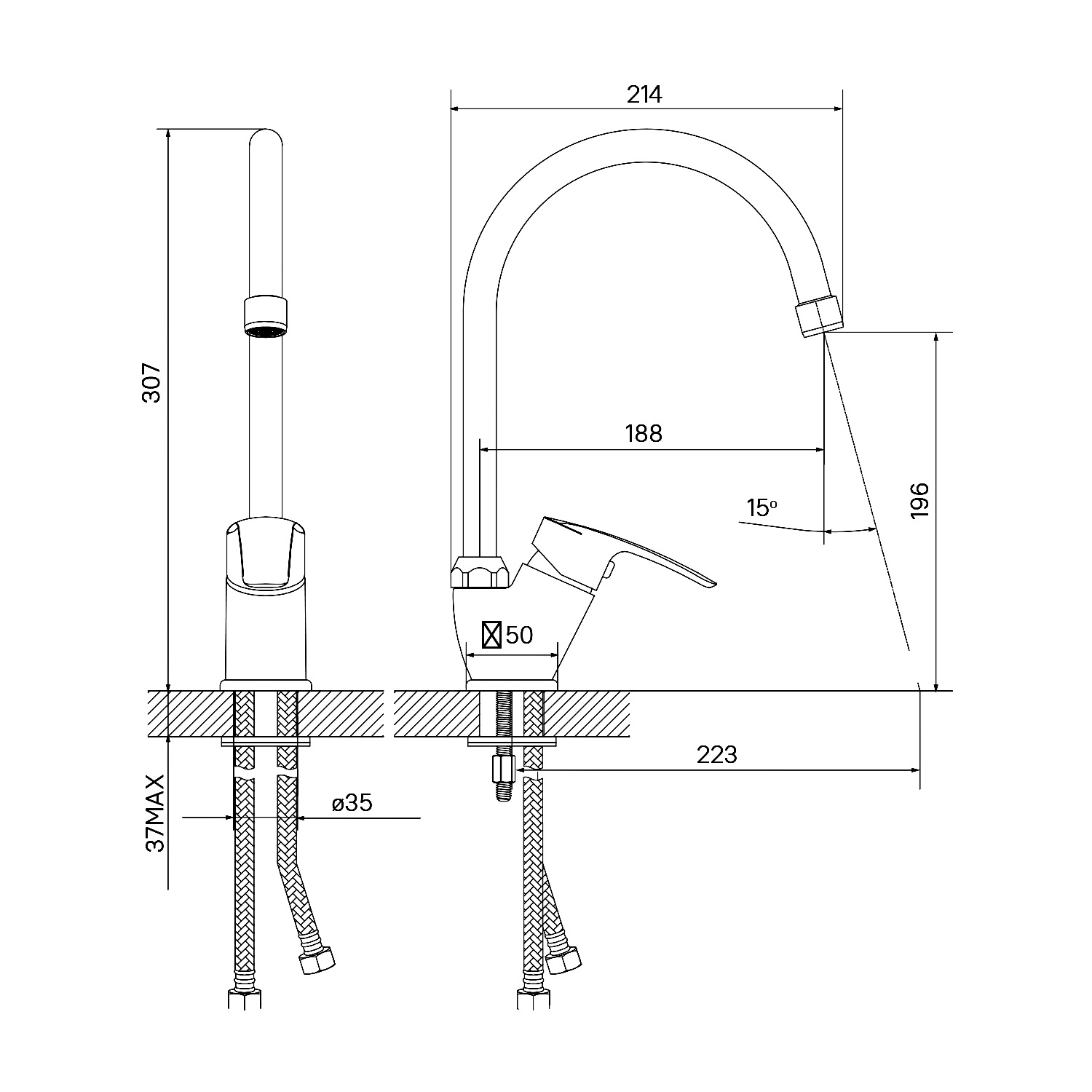 Однозахватный смеситель для кухни Ray имеет универсальный дизайн и подойдет для различных вариантов интерьерных решений. Благодаря поворотному изливу пользоваться им удобно на любой кухонной мойке. Может быть установлен как на мойку, так и на столешницу. Высота излива – 307 мм. Надежный корпус из прочной первичной латуни марки ЛЦ40С ГОСТ 17711-93 с пониженным содержанием свинца — стойкий к коррозии, резким изменениям давления и перепадам температуры воды. Керамический картридж Softap 35 мм обеспечивает точную регулировку температуры и напора воды за счет особенно плавного хода ручки смесителя. Съемный силиконовый аэратор Neoperl® гарантирует ровный и мягкий поток воды без брызг. Аэратор легко чистится от загрязнений, ржавчины и известковых отложений: достаточно провести по нему пальцем. Увеличенное никель-хромовое покрытие соответствует европейским стандартам качества, обеспечивает его стойкость и зеркальный блеск в течение всего срока службы изделия. Ухаживать за покрытием просто — достаточно протирать смеситель влажной салфеткой без использования агрессивных химических средств и средств с абразивами (подробнее о правилах ухода — в паспорте продукта). Гарантия на смесители IDDIS® – 10 лет.