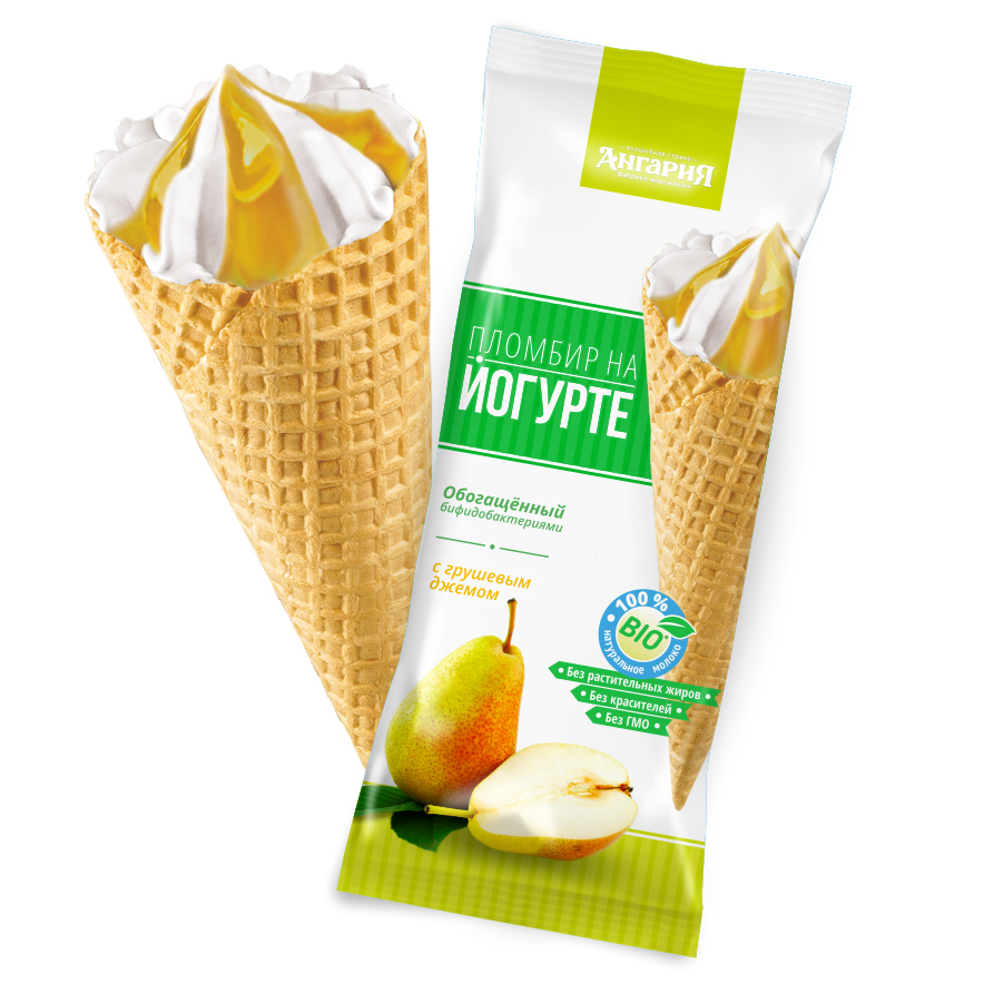 Мороженое АНГАРИЯ Пломбир на йогурте с грушевым джемом рожок