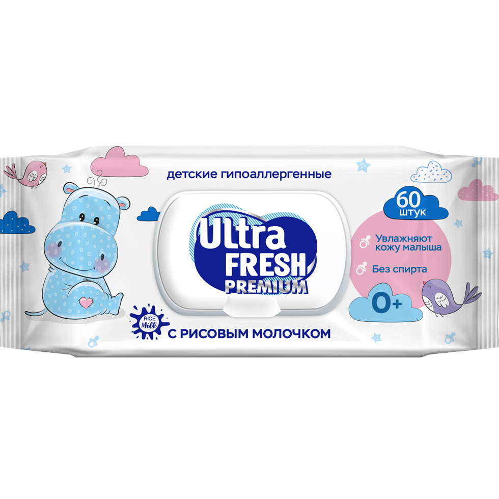 Салфетки влажные ULTRA FRESH Premium с рисовым молочком 60шт