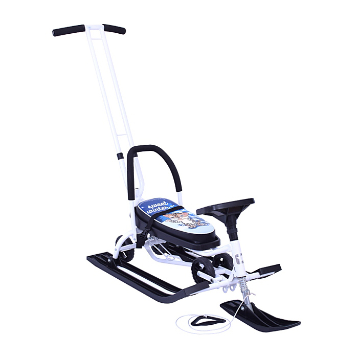 Игрушка спортивная транспортная из металла «SNOWKAT» с Т-образной съемной ручкой толкателем и колесной базой. Выдвижная колесная база. Колеса – литая резина. Усовершенствованная складная спинка с эргономичной конструкцией и боковой поддержкой. Ремешок для безопасного катания ребенка на снегокате. При необходимости ручку-толкатель можно легко снять, а снегокат тянуть за буксировочный тросик. Грузоподъемность при установленном толкателе – 30 кг, при снятом толкателе – 100 кг.