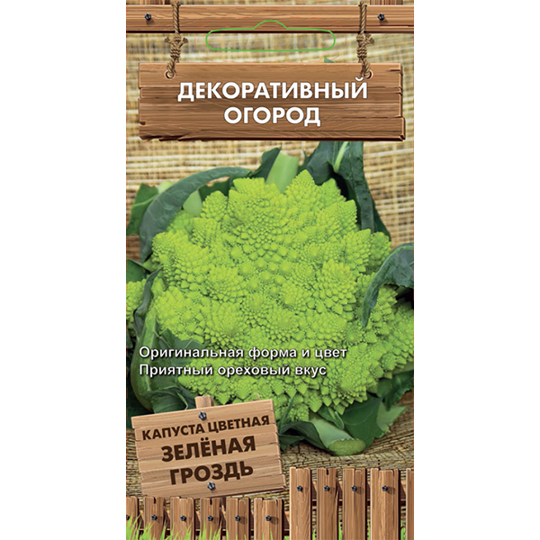 Полезный и декоративный среднеспелый сорт. От всходов до уборки 100-110 дней. Розетка листьев приподнятая. Головка треугольная, непокрытая, среднебугристая, желто-зеленая, плотная, массой до 2 кг. Практически не имеет характерного капустного запаха и горьковатого вкуса, которые появляются при отваривании. Соцветия плотные, не развариваются и имеют приятный ореховый привкус. В приготовлении блюд универсальна: её разбирают на соцветия и обжаривают в кляре, тушат, добавляют в свежие салаты, маринуют, а также замораживают.