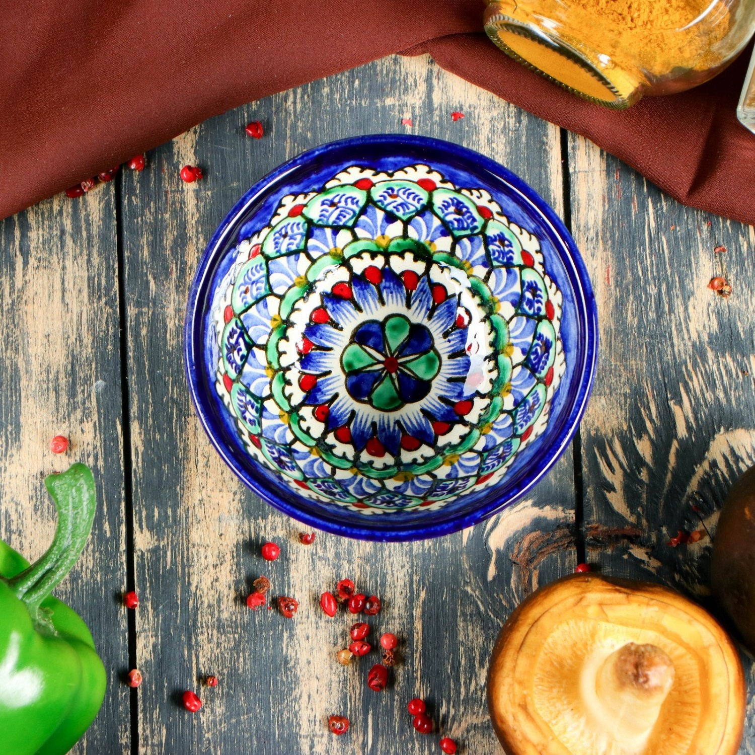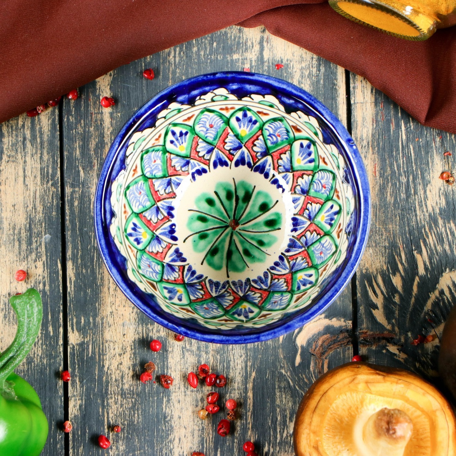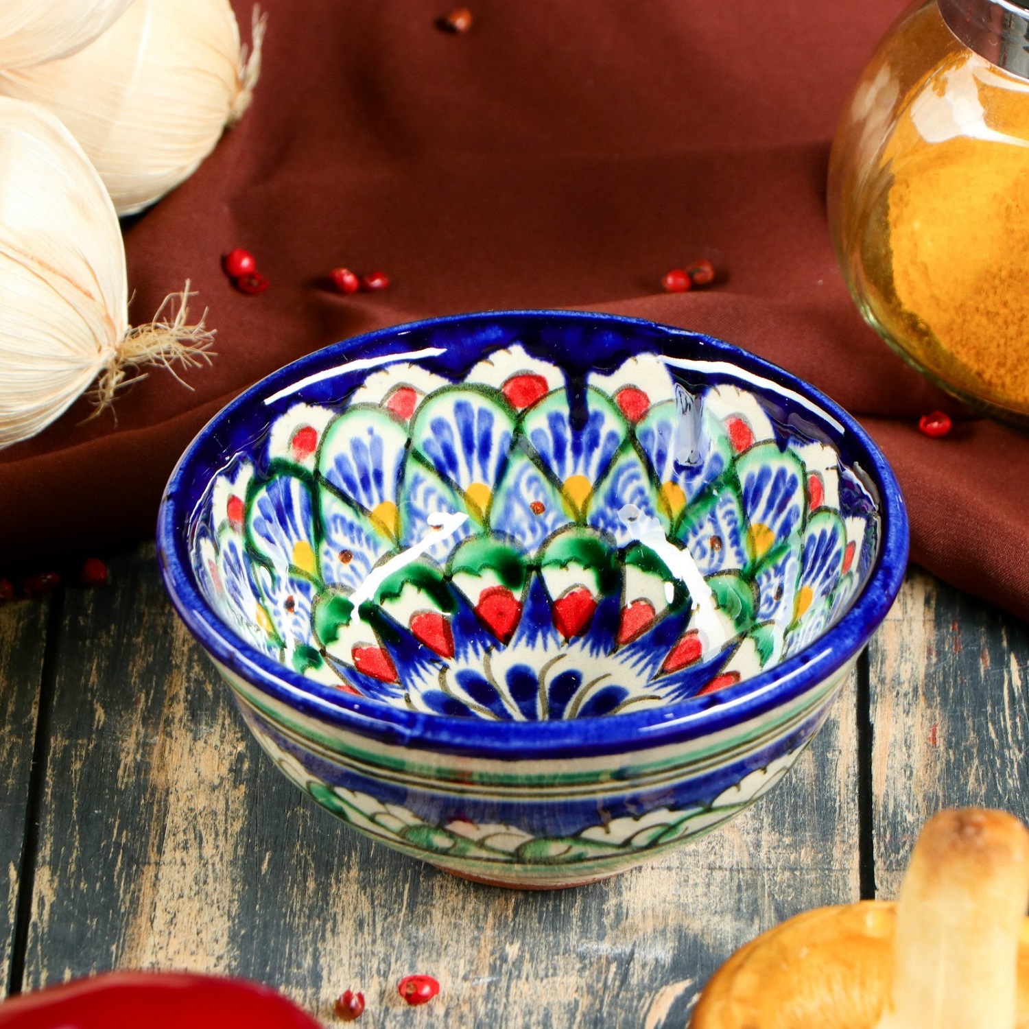 Посуда с национальной росписью станет отменным подарком для ценителей высокородной посуды. Риштан — город на востоке Узбекистана, один из древнейших в Ферганской долине. С давних времён Риштан славится своим гончарным искусством изготовления цветной керамики. Красноватую глину для изделия добывают в самом городе. Мастера утверждают, что их глина настолько высокого качества, что даже не нуждается в предварительной обработке. Дополните коллекцию кухонных аксессуаров пряными восточными нотами.