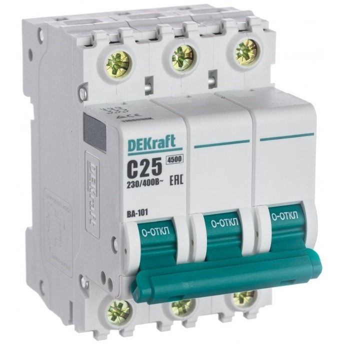 Выключатель автоматический DEKRAFT ВА-101 3Р 25А (C) 4,5кА