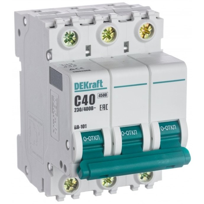 Выключатель автоматический DEKRAFT ВА-101 3Р 40А (C) 4,5кА