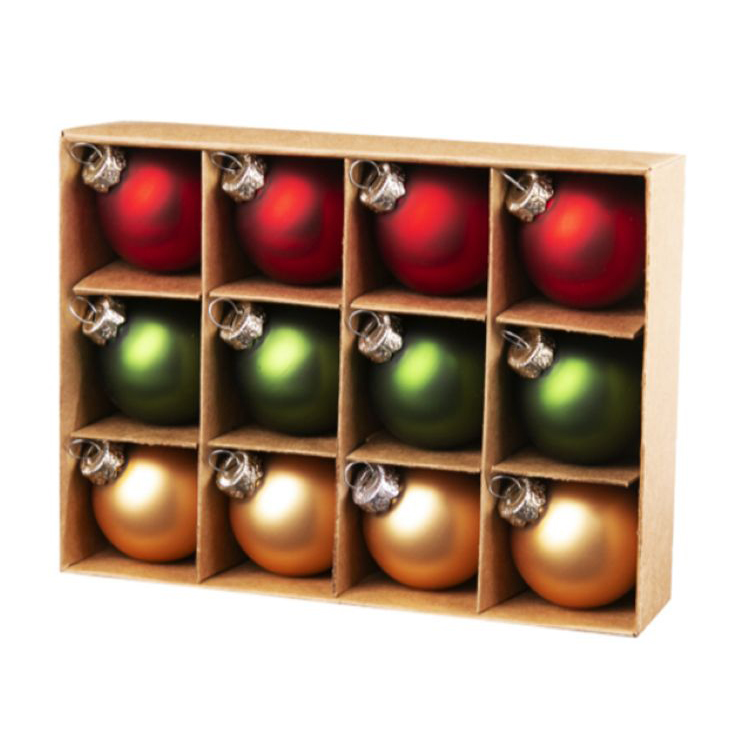 Набор елочных шаров Классические цвета станет идеальным украшением для вашей ели. Классические новогодние оттенки создадут атмосферу праздника, зимней сказки. Такая палитра красок является классической и актуальной во все времена, идеально гармонирует с хвойными ветвями. В набор входят 12 стеклянных шаров. Каждый набор упакован в индивидуальную коробку и может послужить подходящим новогодним подарком для ваших родных и близких.