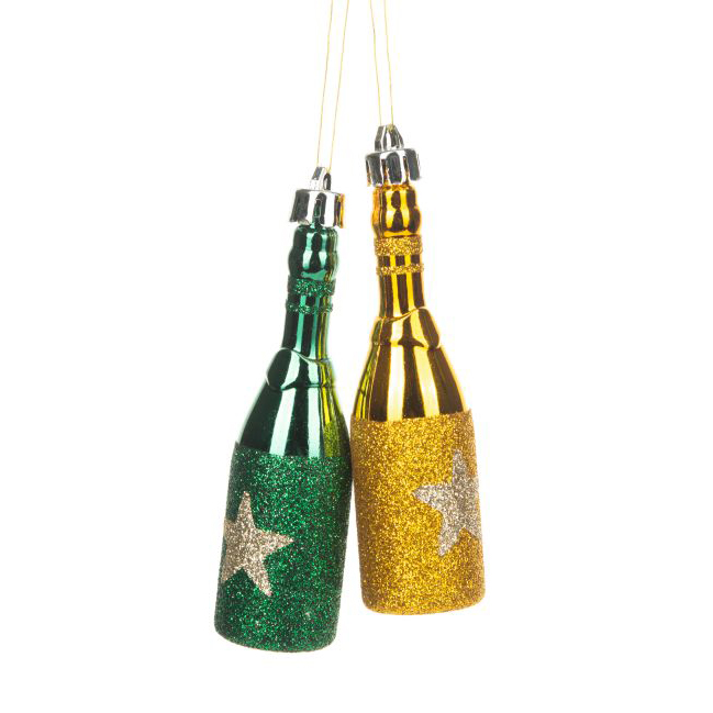 Набор елочных украшений Веселая пара из пластика поможет значительно разнообразить декор новогодней елки. Игрушки выполнены в необычной форме бутылочек и украшены орнаментом в традиционных новогодних оттенках. Елочные игрушки из пластика легкие и практичные. Их можно использовать для оформления елок даже в детских комнатах, идеально подойдут они для украшения новогодних хвойных красавиц в местах с высокой проходимостью (кафе, ресторанах, торговых центрах, фотостудиях).