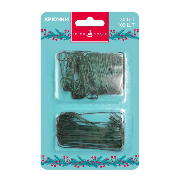 Крючки MAGIC TIME Для подвеса елочных игрушек 88560 150шт зеленые