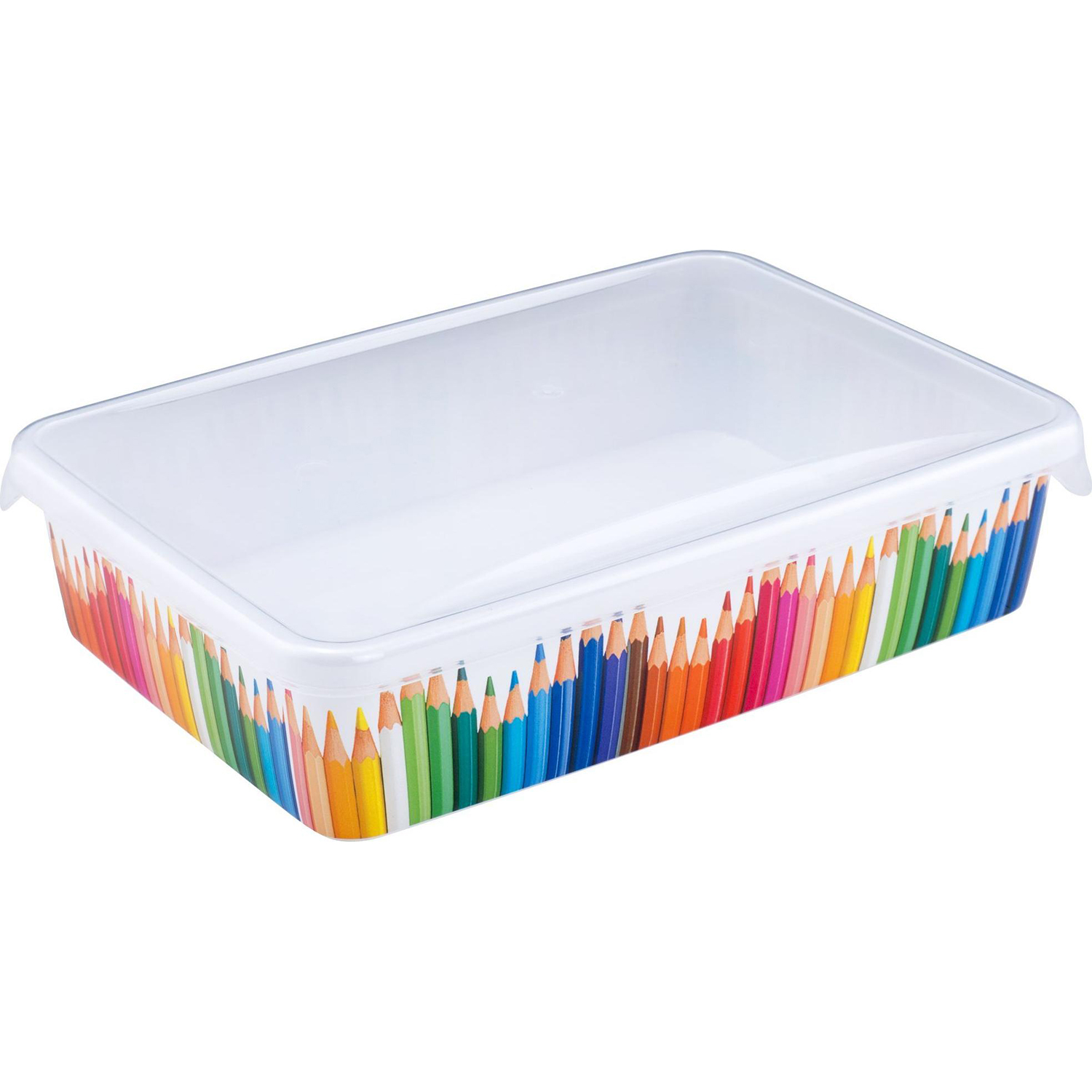 Универсальный лоток Карандашница BranQ - яркий элемент рабочего стола! Предназначен для хранения различных мелочей: ручек, карандашей, ластиков и красок. Размеры лотка с крышкой 22х14х5,2 см. Корпус сделан из невесомого и прочного пластика. Рисунок по периметру корпуса впаян в корпус, его не оторвать и не отклеить.