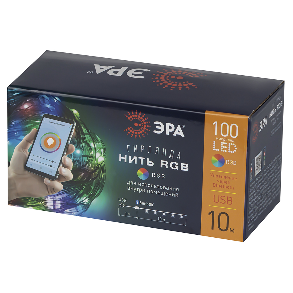 Настраиваемая гирлянда в виде нити со свтодиодами станет замечательным украшением для вашего дома! Такую гирлянду можно разместить не только на елке, но и повесить на стену, или на изголовье кровати. Светящееся новогоднее украшение поможет вам создать особенную атмосферу радости и праздника, как в Новый год, так и в другие праздники. Гирлянда состоит из 100 светодиодных микро-светильников, цвет которых можно менять так, как вам захочется! Цвета RGB светильников настраиваются как при помощи пульта, который идет в комплекте, так и при помощи технологии Bluetooth и мобильного приложения, устанавливаемого на ваш телефон. Длина прозрачного провода составляет 10 метров, что позволяет разместить гирлянду там, где вы пожелаете. Источник питания гирлянды - провод USB, 220 В. Купив новогоднее украшение ЭРА вы останетесь довольны и сможете создать праздничную атмосферу в доме!
