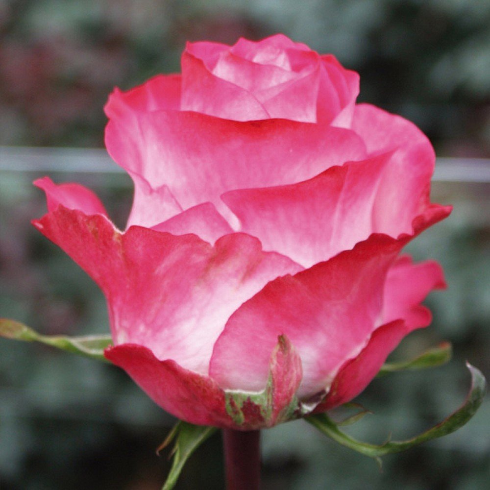 Цветки необычной розово-белой окраски с более светлой обратной стороной и ярким розовым кантом по краю. Бутон плотный, заостренный, классический, долго раскрывающийся. Аромат тонкий и приятный. Цветок располагается на ровном и прочном побеге. Куст прямостоячий, компактный, невысокий, аккуратной формы. Листья темно-зеленого цвета, глянцевые.