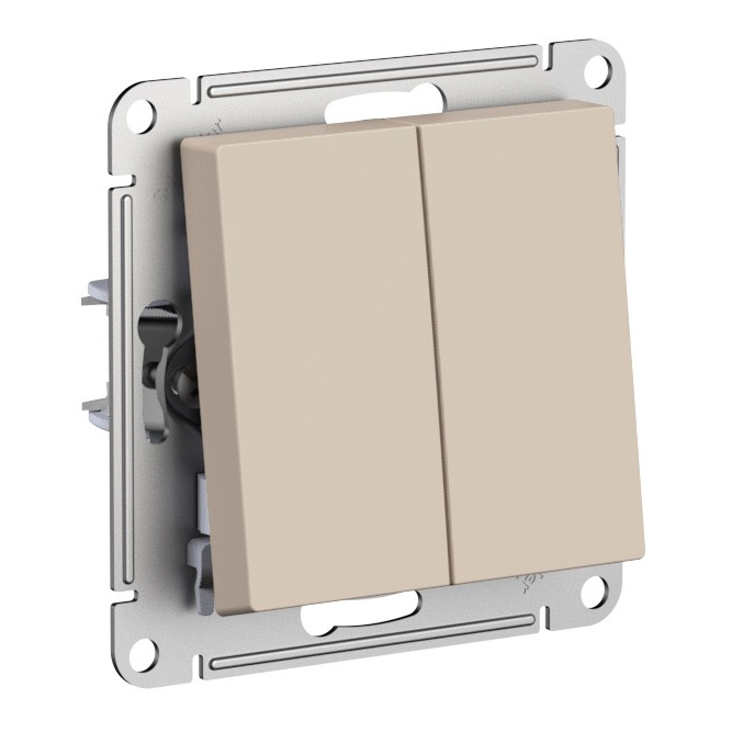 Механизм Systeme Electric (ранее Schneider Electric) серии AtlasDesign переключателя 2-клавишного подходит для сетей 250 В, на ток 10 А. Переключатель позволяют управлять одним источником света с двух точек. Лицевые детали из качественного ABS-пластика, устойчивого к царапинам и УФ-излучению. Усиленные прямые монтажные лапки для лучшей фиксации механизма в монтажной коробке.