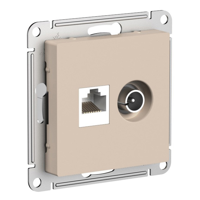 Механизм Systeme Electric (ранее Schneider Electric) серии AtlasDesign двойной розетки разъёмами RJ45 категория 5е и TV предназначен для удобного и быстрого подключения вашего компьютера и телевизора к соответствующим сетям. Лицевые детали из качественного ABS-пластика, устойчивого к царапинам и УФ-излучению. Усиленные прямые монтажные лапки для лучшей фиксации механизма в монтажной коробке.
