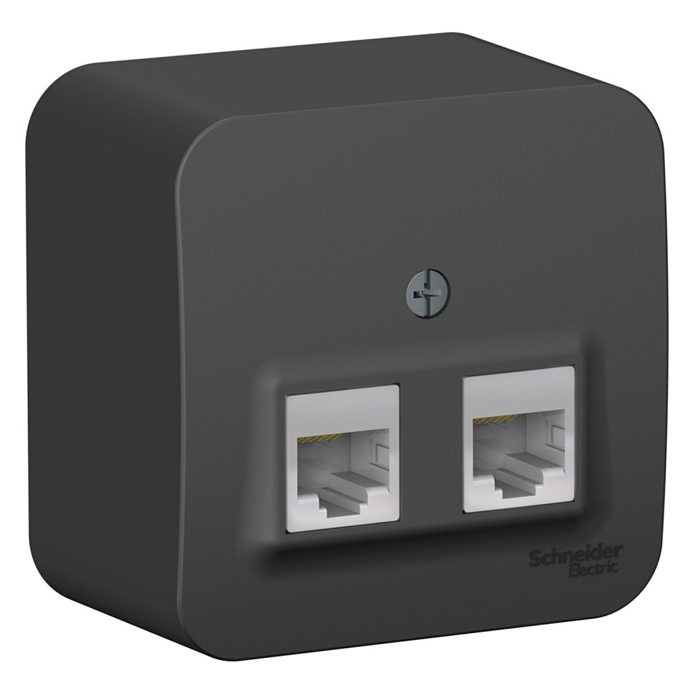 Розетка Schneider Electric BLANCA (антрацит, открытой установки) компьютерная RJ45 категория 5е двухместная с изолирующей пластиной предназначена для удобного и быстрого подключения устройств к сети Интернет. Розетка изготовлена из ABS-пластика, проста в установке, прочна и надежна в применении. Изделия серии Blanca - отличное решение для города и дачи.