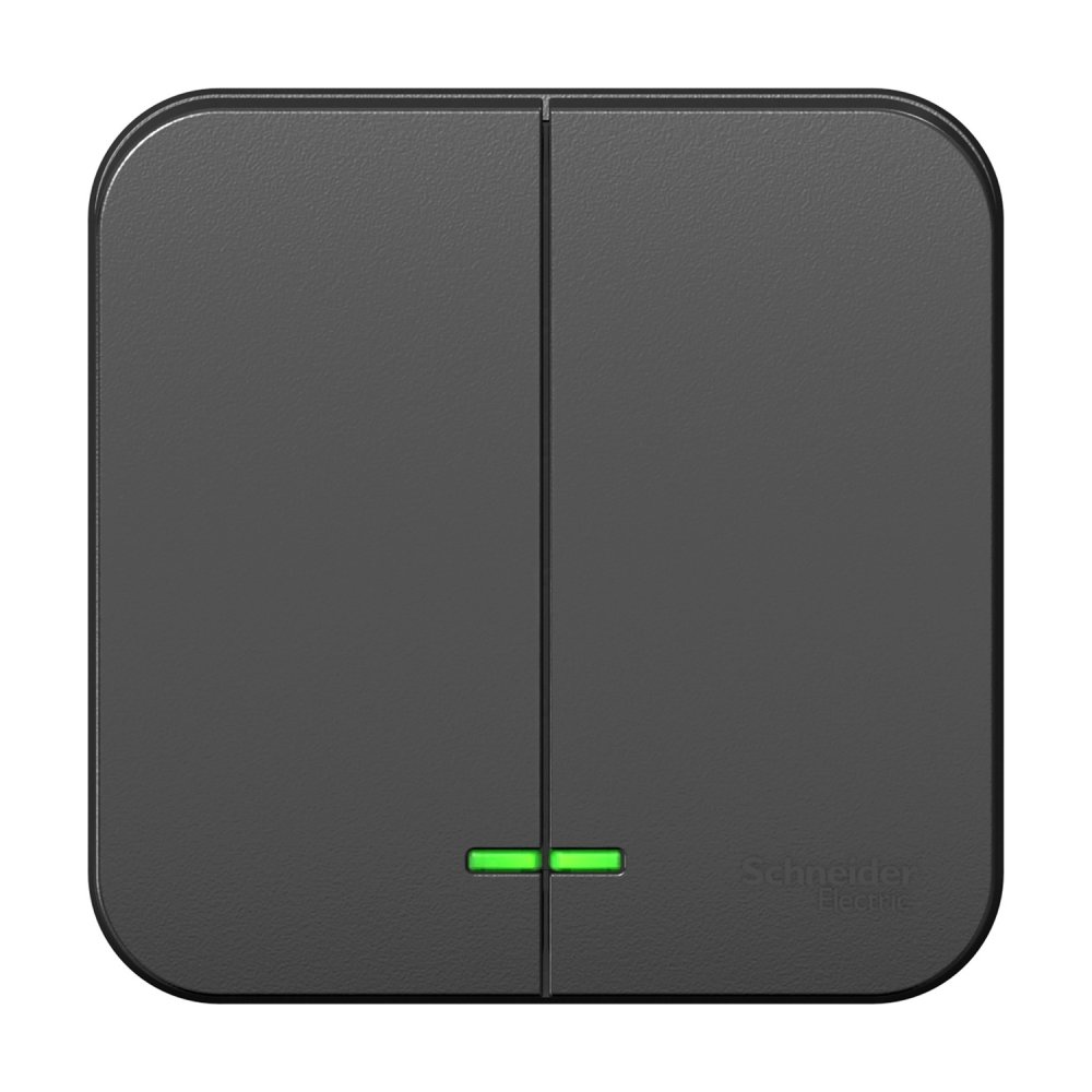 Выключатель Schneider Electric Blanca (антрацит, открытой установки) с изолирующей пластиной двухклавишный предназначен для сетей до 250В, на ток до 10А. Подсветка делает его легко находимым в отсутствие освещения. Двухклавишный выключатель позволяет управлять двумя источниками света из одной точки.