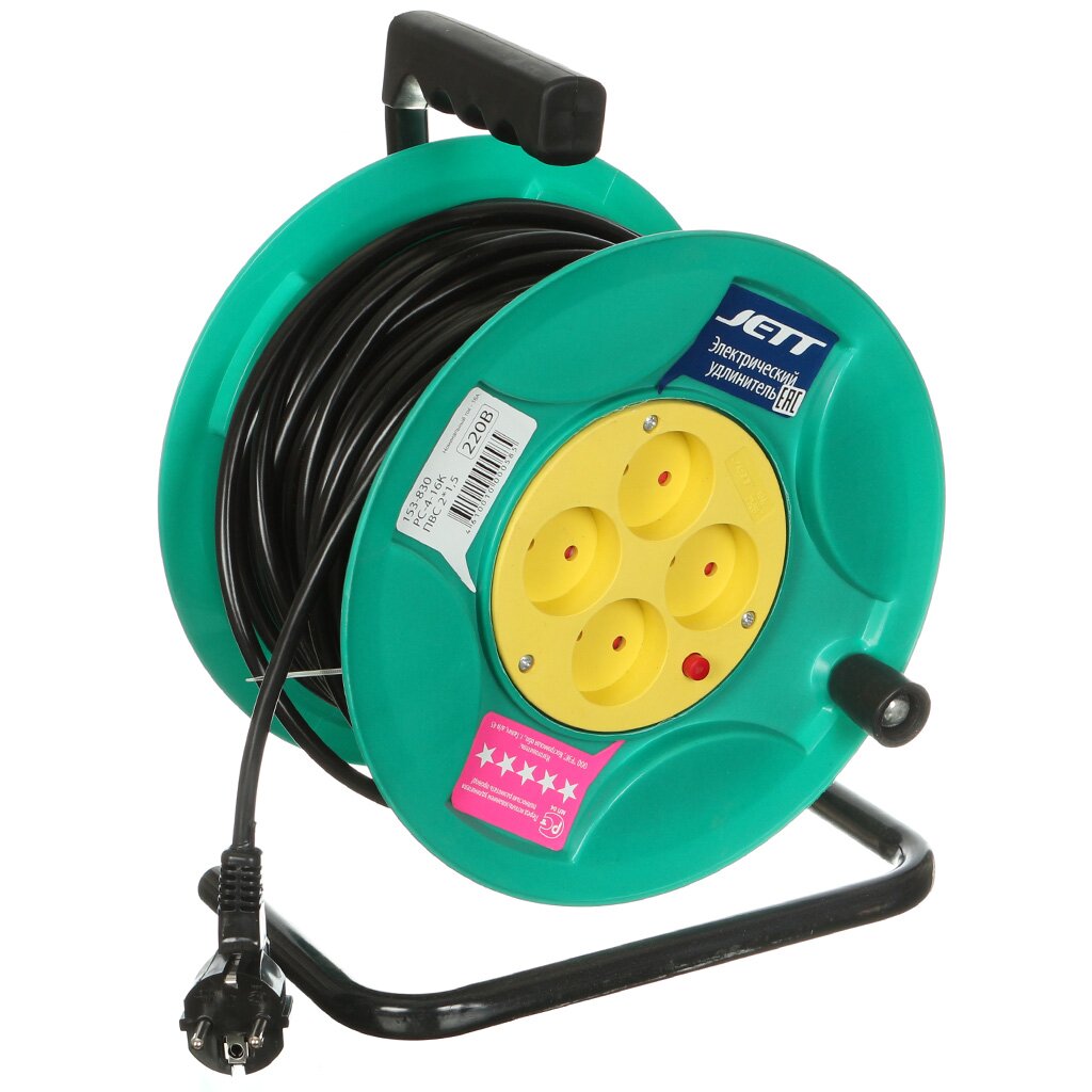 Удлинитель JETT ПВС 2x1,5 на катушке предназначен для удаленного подключения. Катушка облегчает хранение, транспортировку и эксплуатацию кабеля. Удлинитель можно применять в бытовых условиях. Допускается использование в подсобных помещениях, на дачных участках и т.п. На корпусе катушки предусмотрена удобная ручка для переноски конструкции. Устойчивые опоры обеспечивает надежное положение катушки при разматывании кабеля.