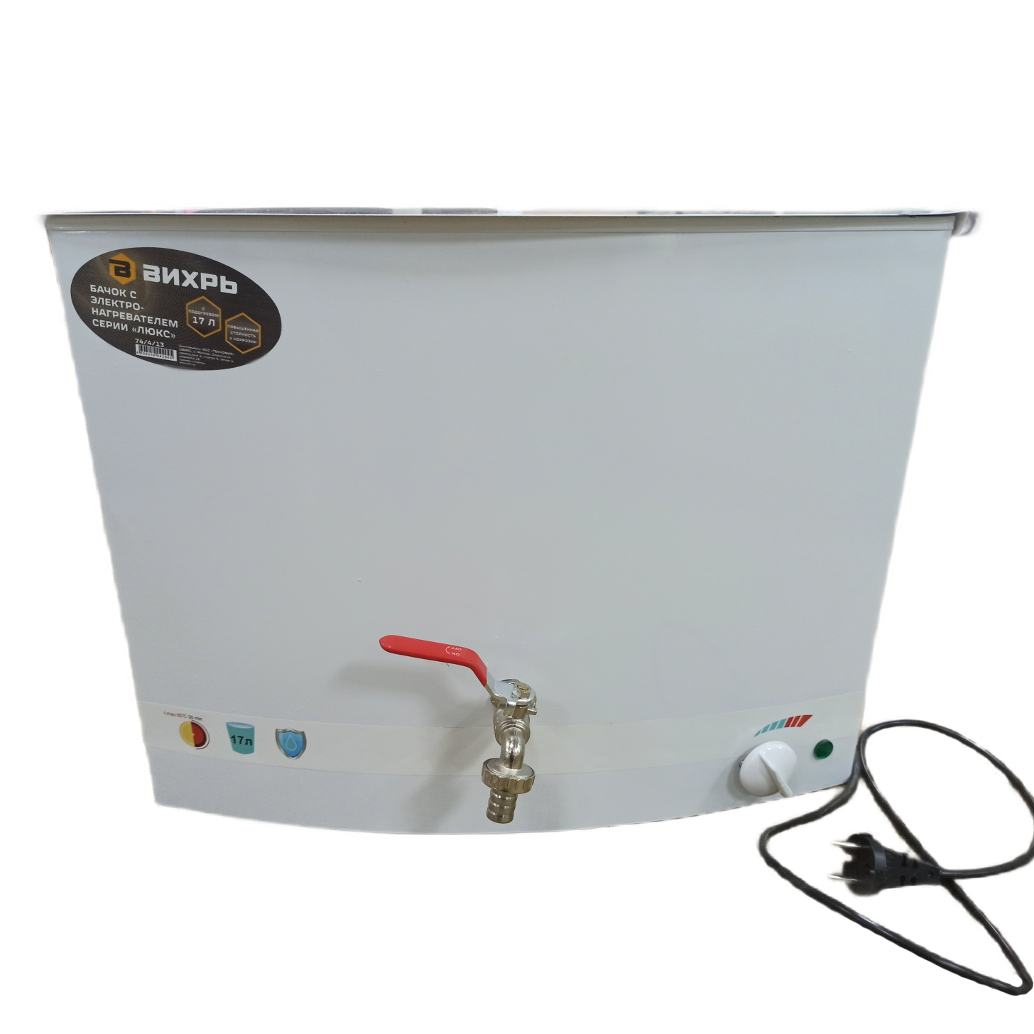 Настенный бачок с электронагревателем «Вихрь» отлично подходит для использования на даче, в мастерских, гаражах и везде, где есть стена для закрепления и розетка. Бачок оснащен нагревателем на 1,3 кВт с терморегулятором, что позволяет выставить пользователю нужную температуру. Он оснащён системой подогрева с возможностью плавной регулировки температуры, что значительно повышает комфорт пользования. Емкость бака составляет 17 литров, этого объема хватит для того, чтобы комфортно использовать теплую воду, а также с этим объемом нагреватель справляется всего за 40 минут.