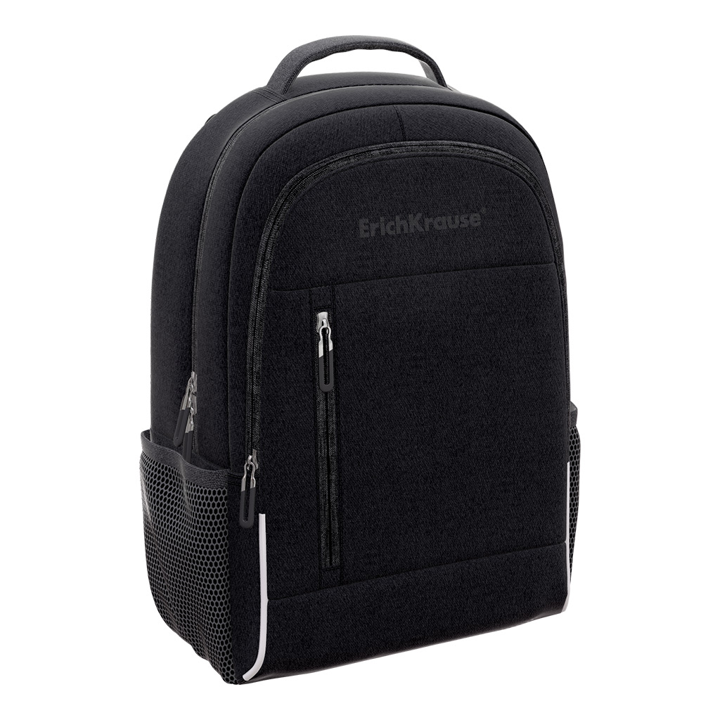 Удобный вместительный городской рюкзак ErichKrause® CityLine. Изготовлен из износо- и морозостойкого водоотталкивающего 100%-го полиэстера. Внутри рюкзака предусмотрено отделение для ноутбука до 15 дюймов и открытый карман. Рюкзак свободно вмещает формат А4. Снаружи: два кармана на молнии и два боковых сетчатых кармана. Мягкая дышащая спинка и внутренняя сторона лямок выполнены из воздухопроницаемого материала AirMesh с трехмерной структурой расположения волокон, которая препятствует образованию влаги при длительном ношении. Крепление на ручку чемодана.