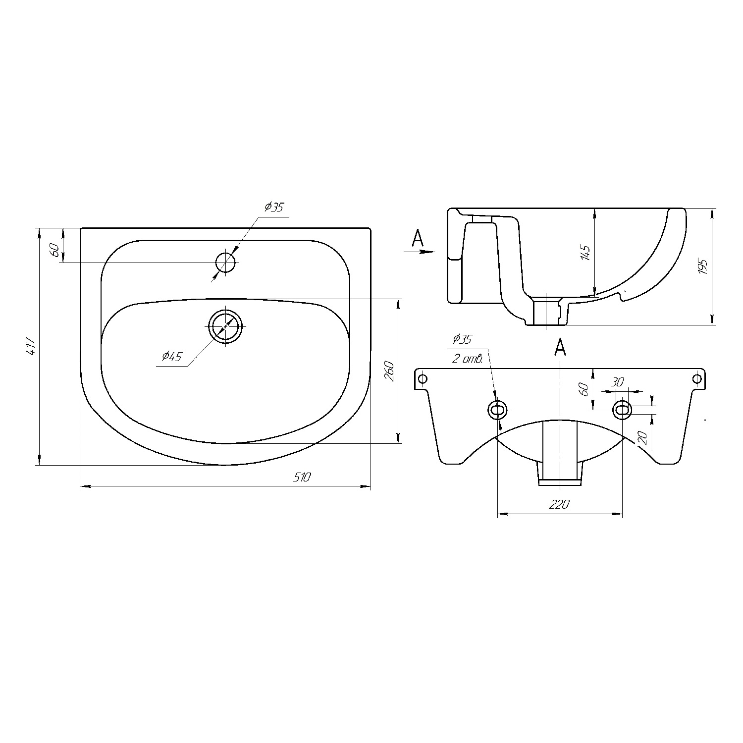 Тумба-умывальник LEMAN Myrtos 50 + раковина Элегия 50