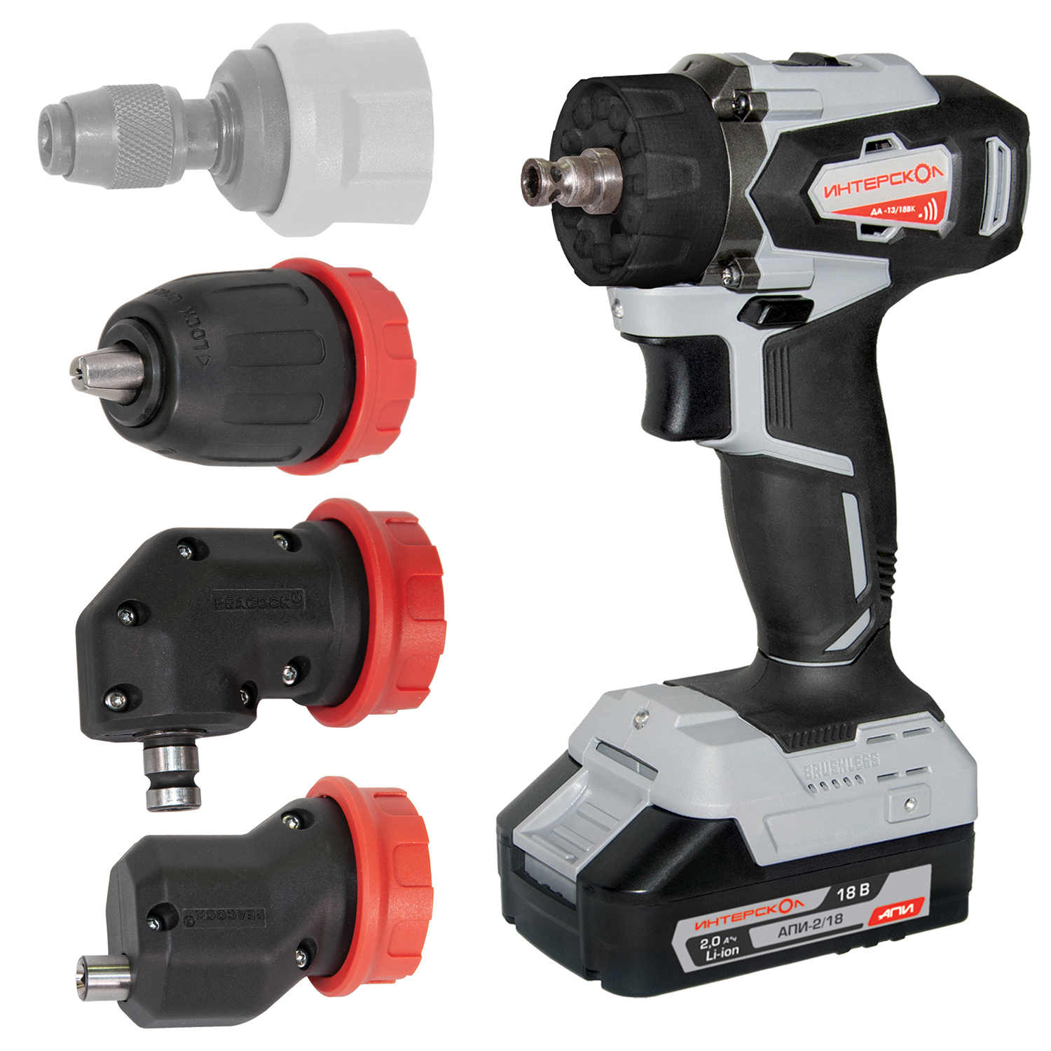 - комплектуется опционально насадками для закручивания вплотную к углу, углового закручивания/сверления, а также насадкой с механическим зажимом HEX ¼”