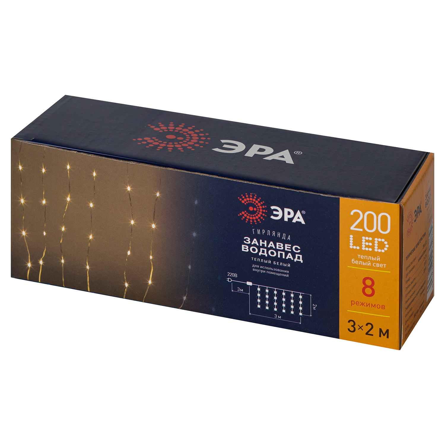 Электрогирлянда ЭРА Занавес Водопад 200 ламп теплый белый свет 300х200см