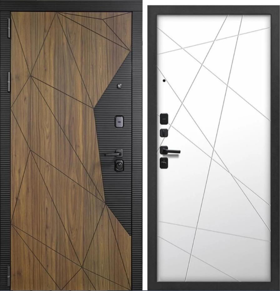 Дверь стальная ВОЛГА-БУНКЕР Морра L размером 2050х860 мм — надежное и стильное решение для вашего дома или офиса. Корпус выполнен из прочной стали с покрытием муар черный, обеспечивая высокую устойчивость к повреждениям и коррозии. Внутренняя внешняя/внутренняя отделка дверного полотна — орех каньон коньяк/белый цвет, создающие элегантный и современный дизайн. Модель сочетает целостность конструкции с эстетикой, обеспечивая безопасность и привлекательный внешний вид. Идеальна для тех, кто ценит качество и стиль.