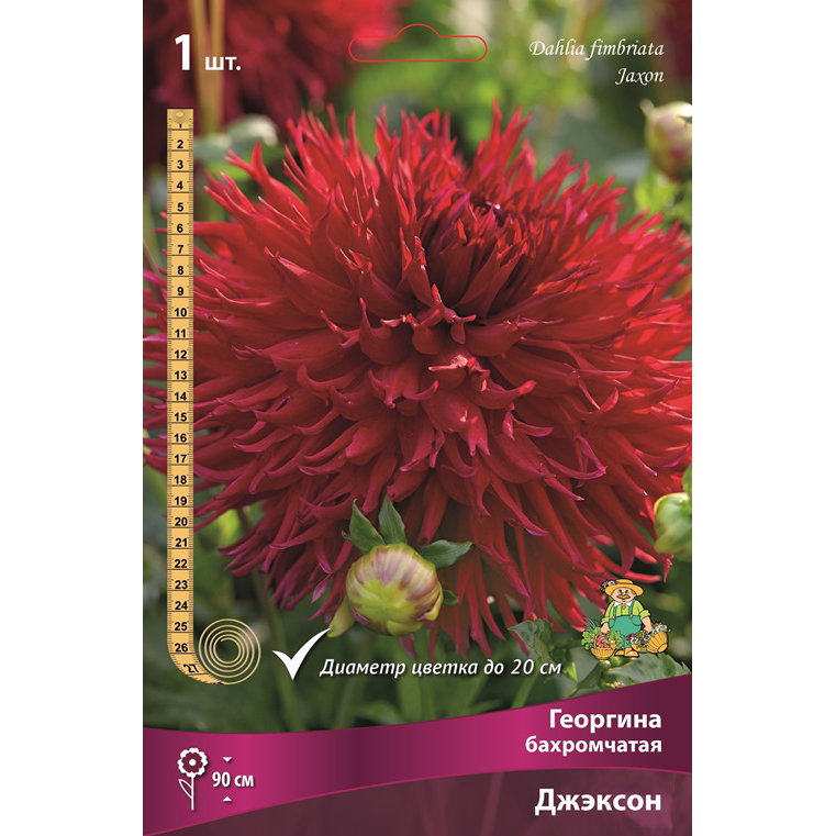 Бахромчатые георгины - иногда их еще называют Рассеченные – относительно новая группа георгин с крупными густо-махровыми цветками. Цветки имеют узкие лепестки (язычковые цветки), свернутые у основания и рассеченные на краях – за счет этого смотрятся, по настоящему, великолепно! Джэксон - высота растения 90 см. Цветок очень крупный, диаметром 15-20 см, темно-красный.