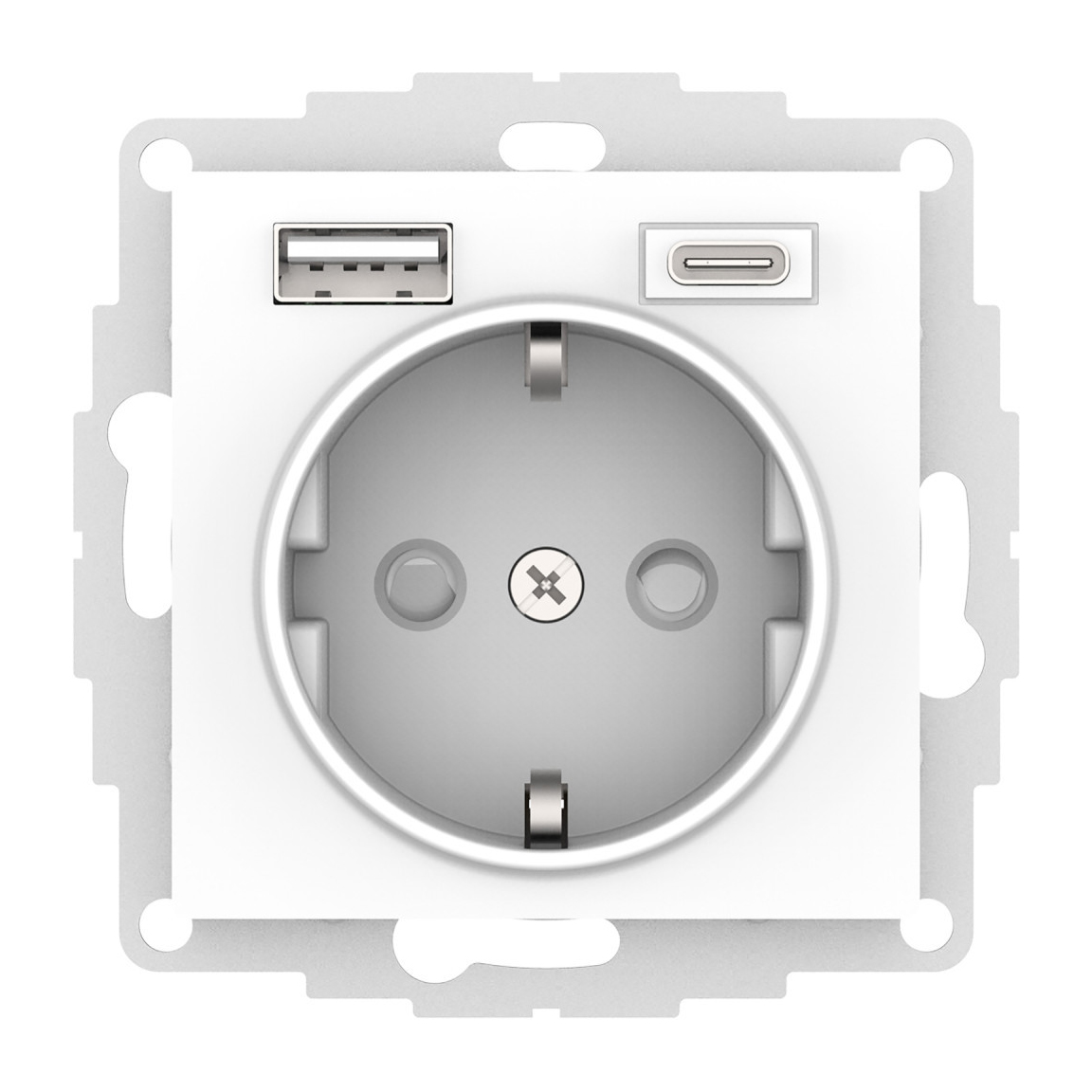 Розетка предназначена для присоединения электрических приемников, а также для зарядки электронных устройств для установки в жилых и общественных помещениях. Лицевые детали из качественного ABS-пластика, устойчивого к царапинам и УФ-излучению. Заземляющий контакт обеспечивает дополнительную защиту от удара электрическим током. Шторки обеспечивают дополнительную безопасность в доме, где находятся дети. Одно устройство позволяет как подключить бытовые приборы, так и зарядить мобильные устройства.