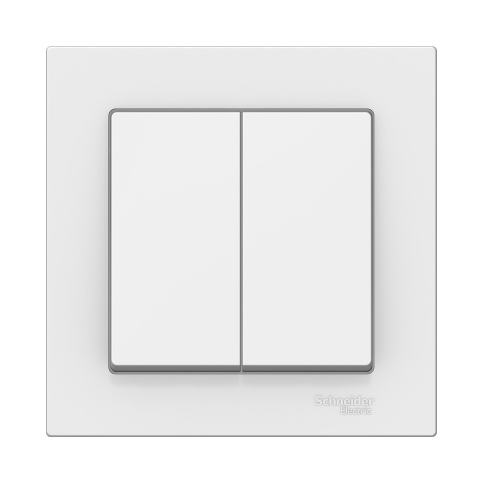 Выключатель Systeme Electric AtlasDesign (в сборе, цвет ЛОТОС) 2-клавишный подходит для сетей 250 В, на ток 10 А. Двухклавишный выключатель позволяет управлять двумя источниками света с одной точки. Лицевые детали из качественного ABS-пластика, устойчивого к царапинам и УФ-излучению. Изделие поставляется в комплекте с рамкой того же цвета. Усиленные прямые монтажные лапки для лучшей фиксации механизма в монтажной коробке.
