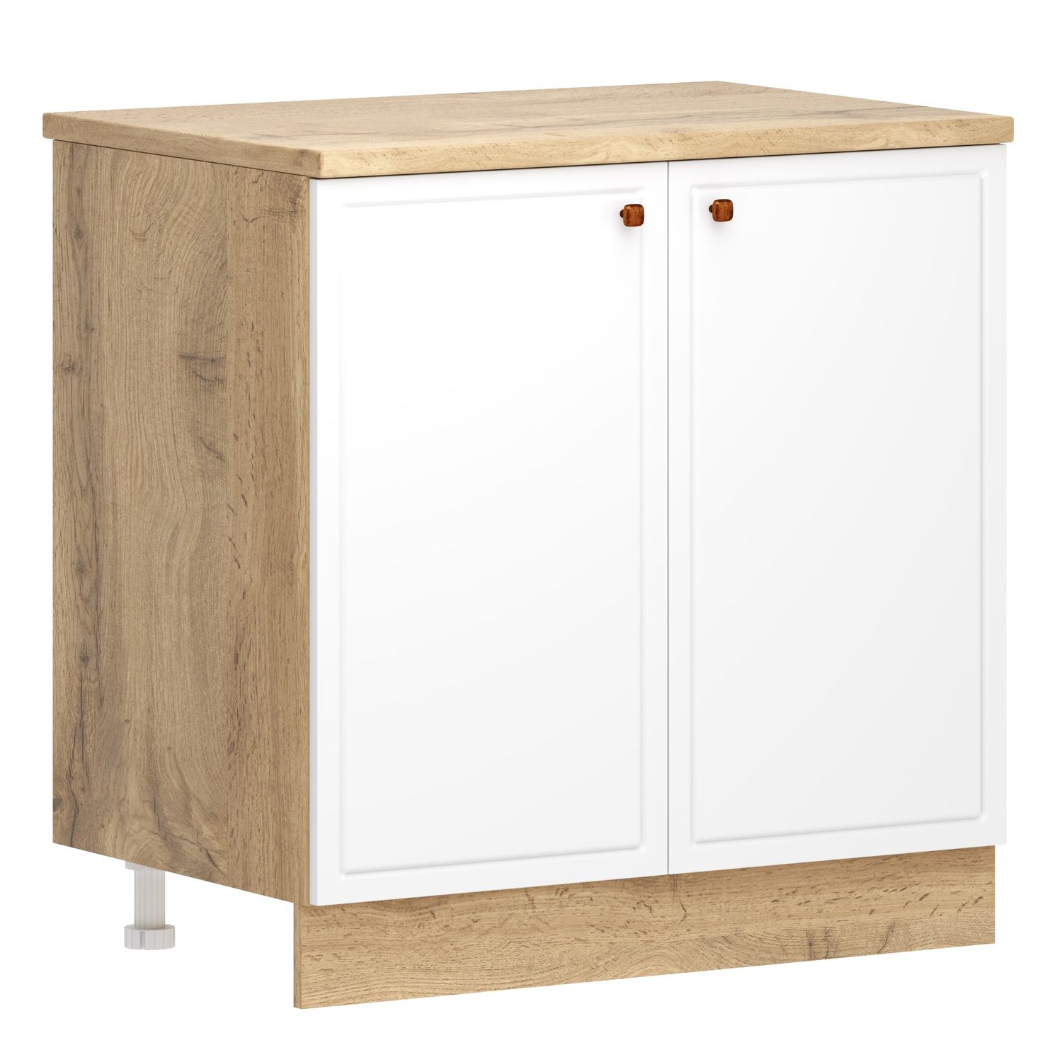 Фасады из МДФ в белом цвете подчеркивают чистоту и свежесть, а корпус из ЛДСП цвета «дуб бунратти» добавляет теплоту и натуральность. Просторные шкафы и удобные тумбы обеспечивают максимальное использование пространства, делая кухню не только красивой, но и практичной.