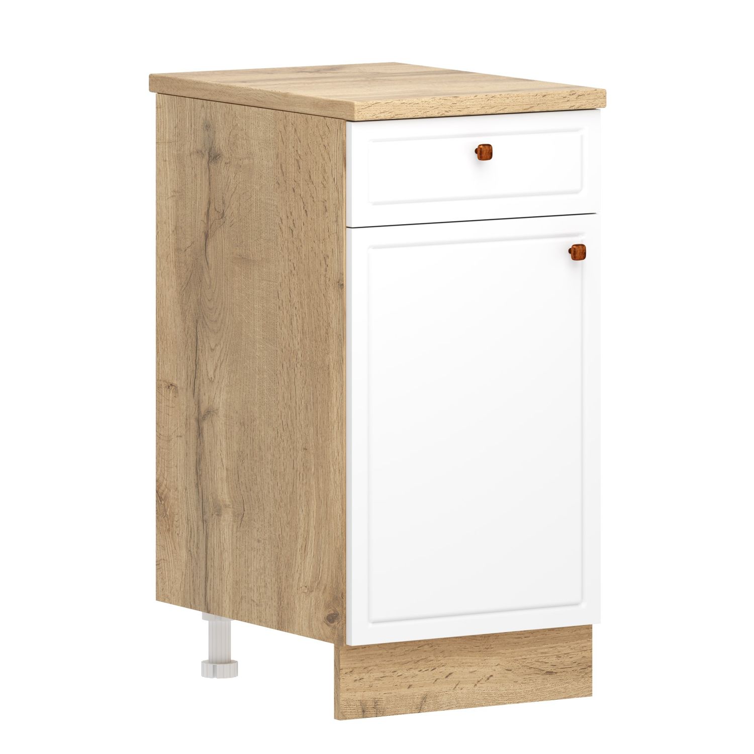 Фасады из МДФ в белом цвете подчеркивают чистоту и свежесть, а корпус из ЛДСП цвета «дуб бунратти» добавляет теплоту и натуральность. Просторные шкафы и удобные тумбы обеспечивают максимальное использование пространства, делая кухню не только красивой, но и практичной.