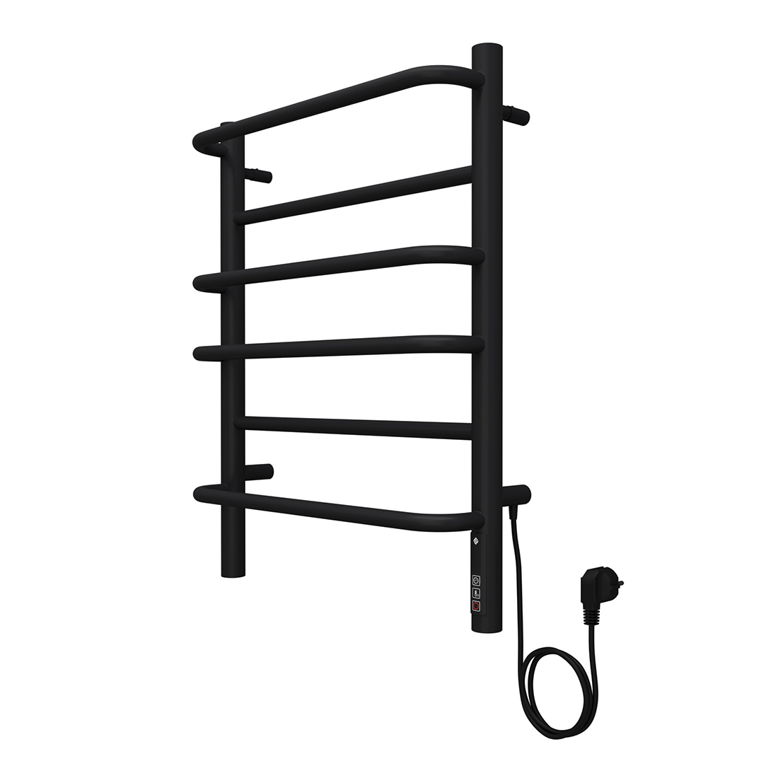 Электрический полотенцесушитель TERMINUS — это современное и стильное решение для вашей ванной комнаты. Он выполнен из высококачественной конструкционной стали с порошковым покрытием черного цвета, что придает ему элегантный и современный вид.