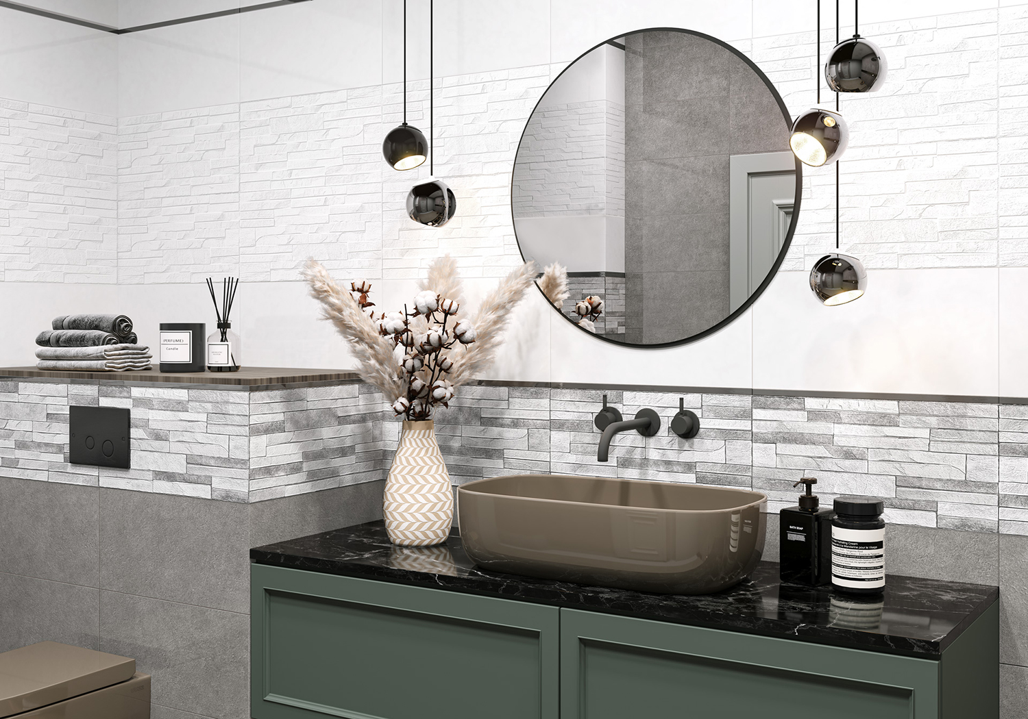 Дизайн коллекции Discover — это исследование, путешествие, открытие нового, чего-то первозданного и натурального. Ведь серия плиток с текстурой скального гранита подчеркнута рельефом, который усиливает эффект и оживляет каменную текстуру. Настенная коллекция произведена с sugar-эффектом в двух оттенках: бежево-коричневом для любителей экостиля и бело-сером для предпочитающих скандинавский дизайн. Акцентом коллекции являются плитки на рельефе в виде рукотворной кирпичной кладки, которая имеет продолжение на каждой плитке. С такой коллекцией оригинальным решением станет зонирование помещения с помощью цвета и фактур разных артикулов серии. Ведь фактурная поверхность — это отличный способ внести разнообразие в интерьер, как небольшой ванной комнаты, так и просторной кухни в качестве фартука. Такая объемная фактура создает ощущение трехмерного пространства, а благодаря ярким акцентам в виде металлических стиков можно создать оригинальное решение для интерьера.