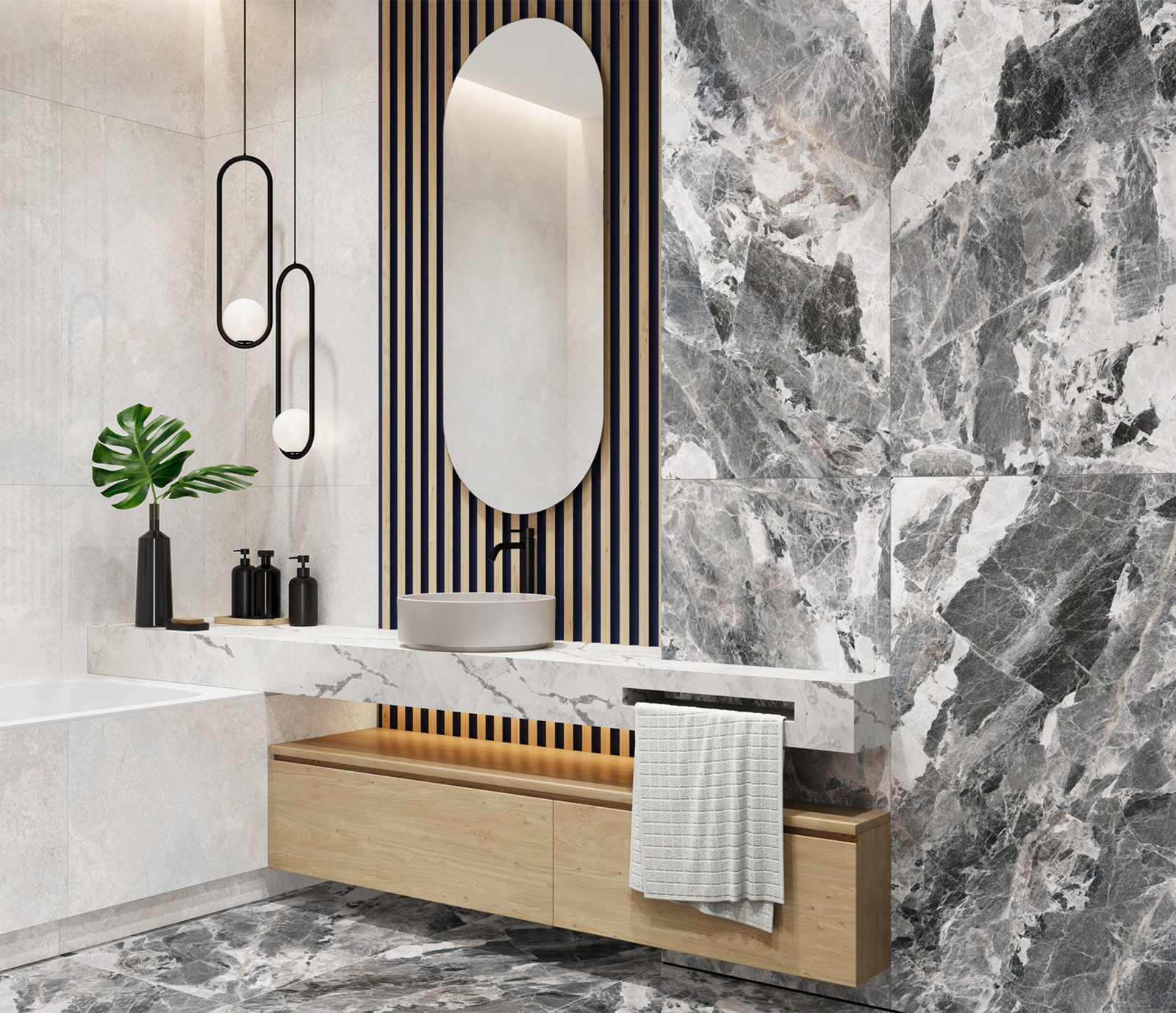 Керамогранит с текстурой серого бразильского кварцита Cristallo Botanico представляет собой эффектное решение для современного дизайна. Рисунок этой текстуры напоминает заснеженные горные вершины. Такой керамогранит искусно украсит как обширные пространства, так и небольшие комнаты, привнося в них нотку элегантности и стиля. Полированная поверхность усиливает глубину рисунка и градиенты серо-белых оттенков и теплых прожилок текстуры. Lavaredo является акцентным керамогранитом, он станет гармоничным компаньоном к светлым мраморам и нейтральным текстурам бетона.