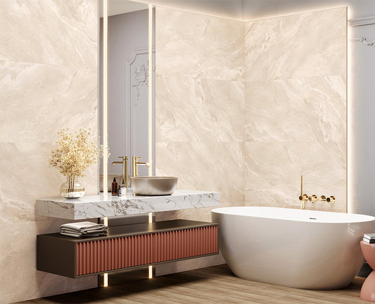 Узор природной мраморной текстуры коллекции керамогранита LCM Argenta имеет крупные волнообразные прожилки и множественную палитру полутонов в каждом цвете. Это не просто материал для отделки — это элемент, способный оживить пространство и привнести в него дыхание природы.