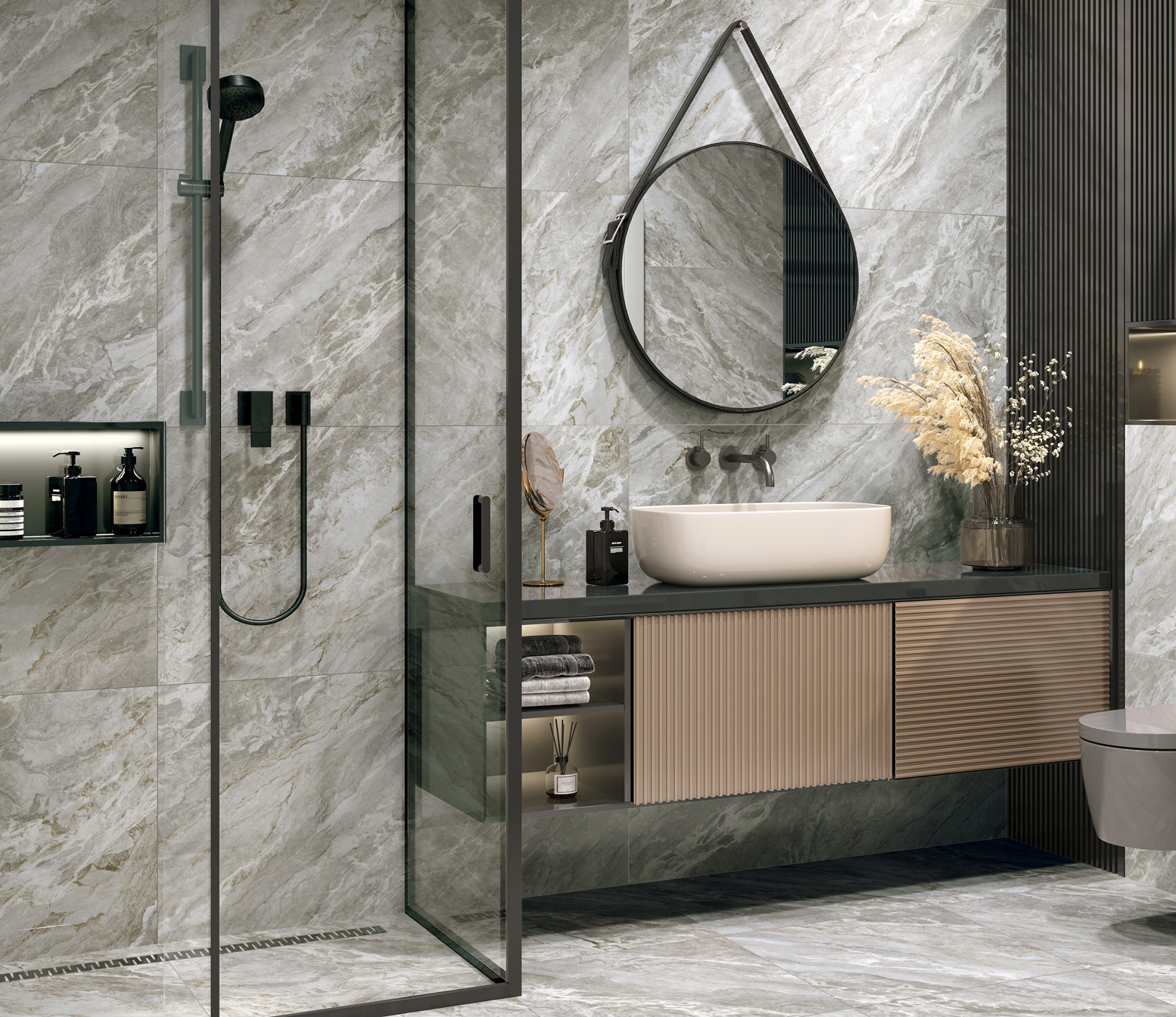 Керамогранит Corby — это привлекающий взгляд природный материал кварцит Avohai, добываемый в Бразилии. Камень молочно-бежевого цвета с коричневыми и белыми прожилками, создающий ощущение спокойной элегантности, тепла и уюта. Светлые штрихи в структуре камня складываются в неповторимый рисунок, который хочется разглядывать бесконечно, а поверхность sugar и спецэффект carving подчеркивают элегантность прожилок.